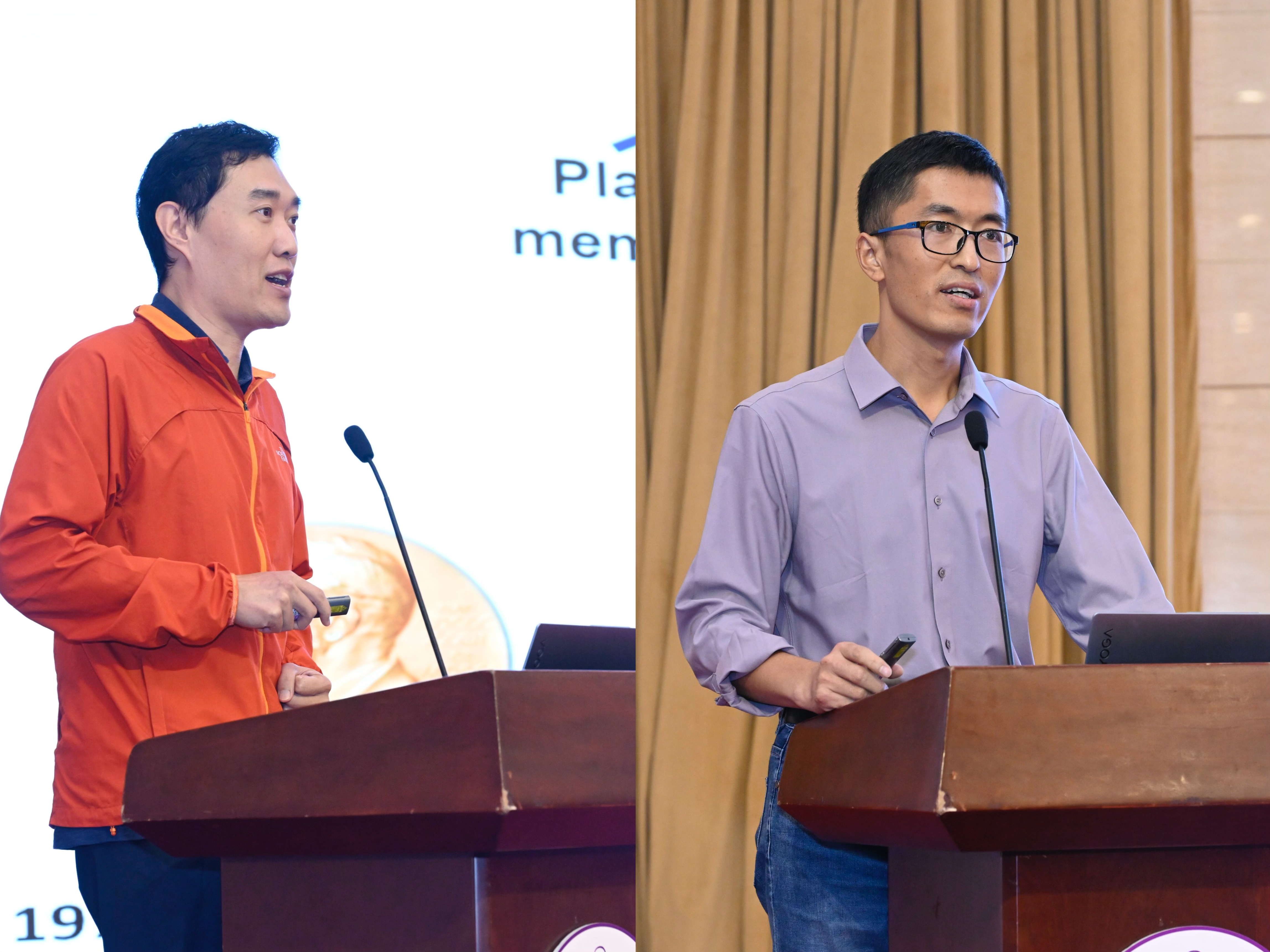 在教师学术报告环节,葛亮介绍了非经典分泌新型跨膜转运通路“THU”的解析和生理功能研究。该通路在细胞应激环境下通过特殊跨膜机制维持内部稳态平衡,并在肥胖相关慢性炎症与代谢性疾病中发挥关键作用。动物实验证实,调控相关因子可改善血糖水平并提升胰岛素敏感性,为糖尿病等代谢疾病的防治提供了新思路与潜在靶点。方晓峰以“Understanding Plant Abiotic Stress via Biomolecular Condensation”为题,介绍了团队在植物逆境胁迫与生物分子凝聚作用方面的研究进展。通过化学筛选与大规模分析,方晓峰团队发现了数百种与高温、渗透压及盐胁迫相关的凝聚蛋白,并揭示了其动态响应机制。他特别提到,部分蛋白具备“温度开关”功能,可快速感知环境变化并形成应激颗粒,从而帮助细胞维持稳态。