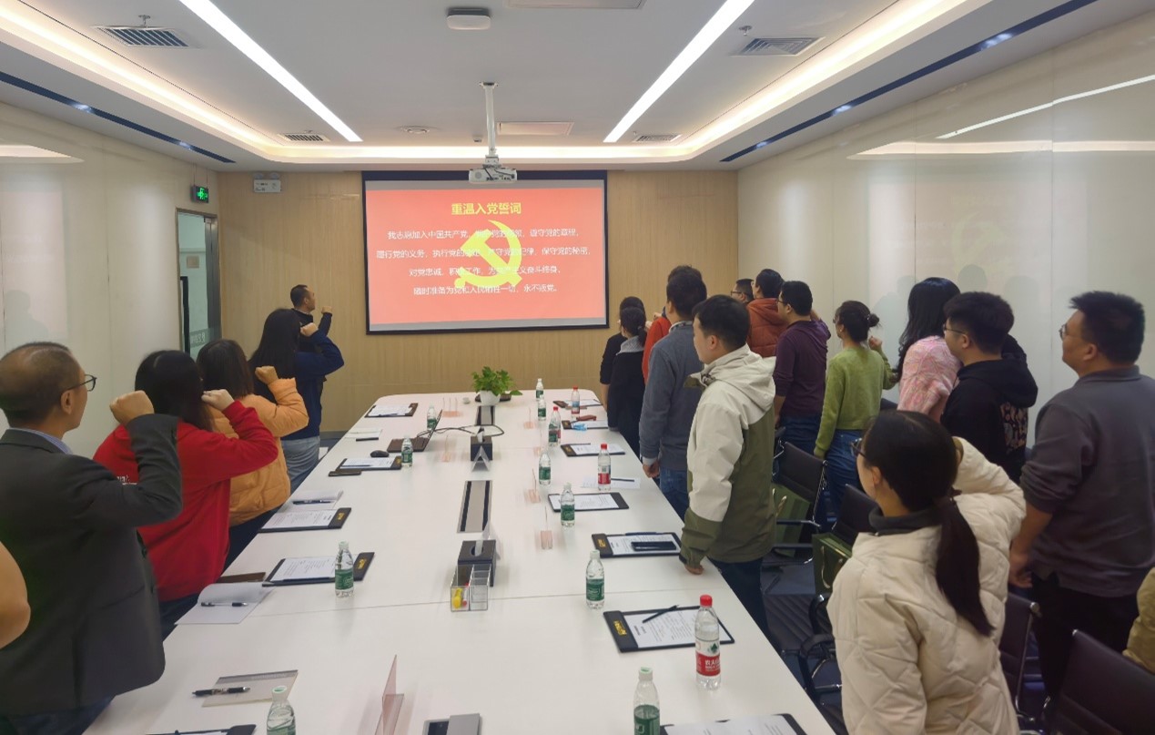 本次活动包含公司参观、党建座谈与党旗下宣誓三个环节。在文化展厅,艺妙神州团队系统介绍了公司发展历程。通过丰富的图文资料,展现了创始人秉承“科技为民”初心投身创业的坚守,记录了团队攻克关键核心技术、实现自主创新的奋斗,并最终展示了公司在基因细胞药物管线布局与临床推进领域取得的重大突破。