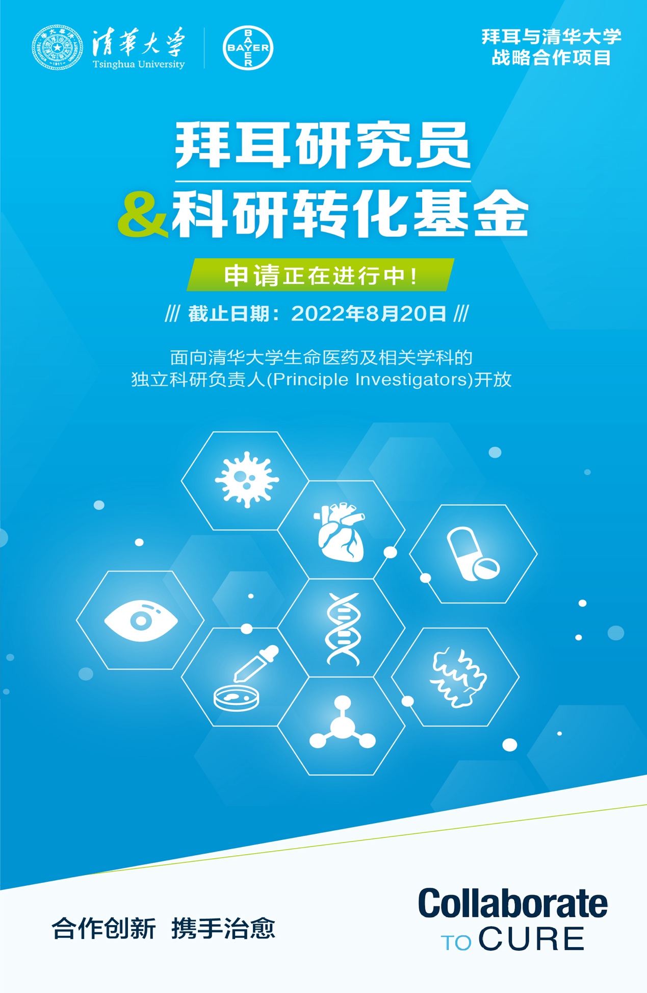 Bayer Investigator Award is presented annually since 2009 to Tsinghua Investigators for their scientific excellence in the research field relevant to Bayer Pharma R&D. In 2022, Bayer will support up to three investigators in Tsinghua, each selected Bayer Investigator will receive 150 kCNY award, and will get connected to Bayer scientists for potential research collaboration discussion.