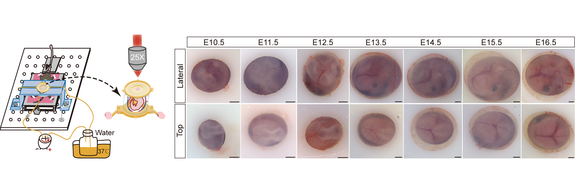 图:IMEE活体观察不同发育时期的胚胎小鼠