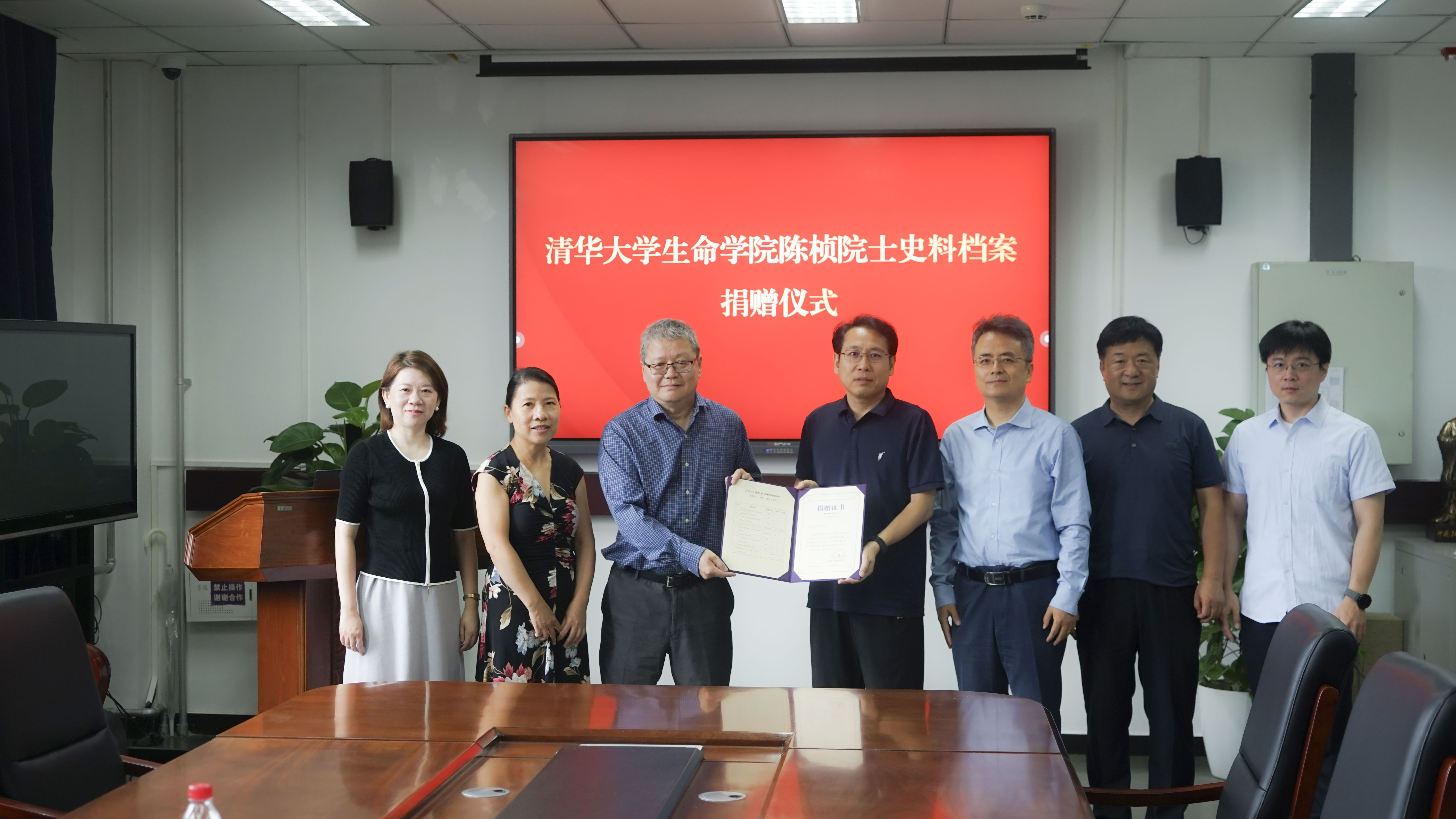 8月29日上午,陈桢院士史料捐赠仪式在清华大学生命科学学院生物学馆312会议室圆满举行。陈桢院士外孙、清华大学校友李凌霄先生协同爱人范智力女士向清华大学档案馆捐赠了一批珍贵的史料。清华大学档案馆副馆长朱俊鹏、科技和人物档案部主任李运峰,生命学院党委书记王新泉、院长助理钱文丽等出席捐赠仪式。本次捐赠史料包含陈桢论著、照片、证书、手稿等实物及电子文件共计95件。捐赠仪式由生命学院党委副书记李鹏主持。
