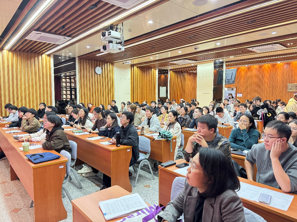 董园向同学们系统介绍了学院近年毕业生的具体去向,包括就业领域分布、单位性质与地域选择等特点。她指出,学院博士毕业生主要流向高等院校、科研机构及生物医药企业,同时选择进入公共服务部门的人数也呈上升趋势。她建议同学们可重点关注国有企业、医疗机构及高水平科研单位等就业方向。此外,董园就2025年秋季学期的就业日程安排、毕业手续办理流程以及信息获取平台等实务操作进行了详细说明,鼓励同学们积极参与校院两级举办的各类招聘活动。